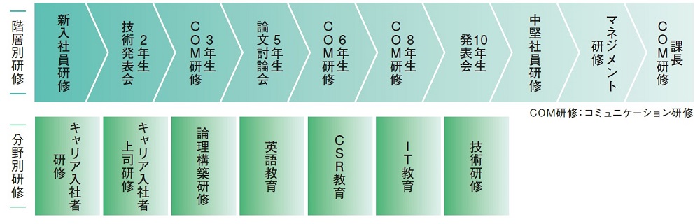 新卒入社者、キャリア入社者、職位者など、幅広い階層で従業員の能力向上やマネジメント力向上など、従業員のレベルアップを図るべく、教育制度の整備・充実に取り組んでいます。